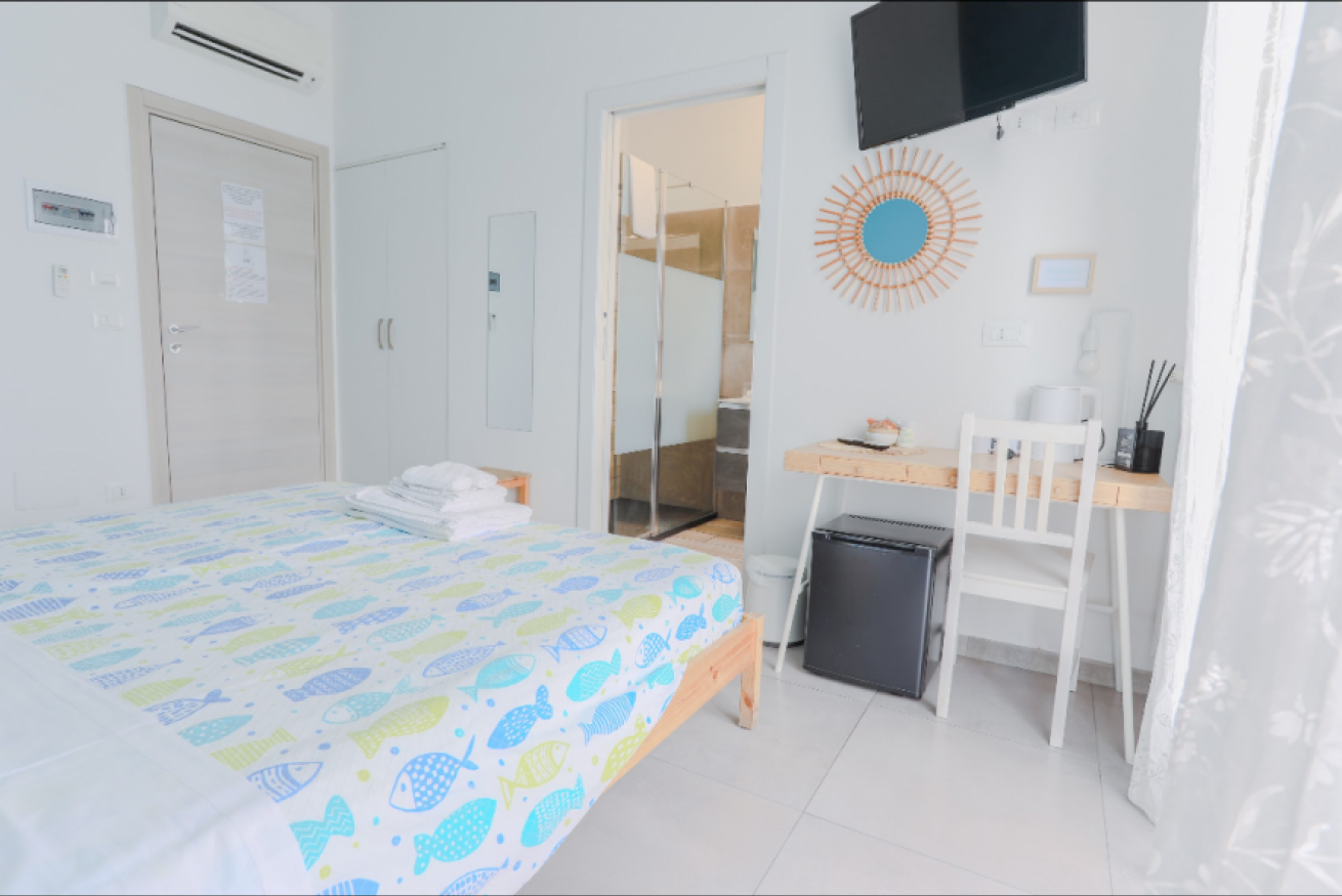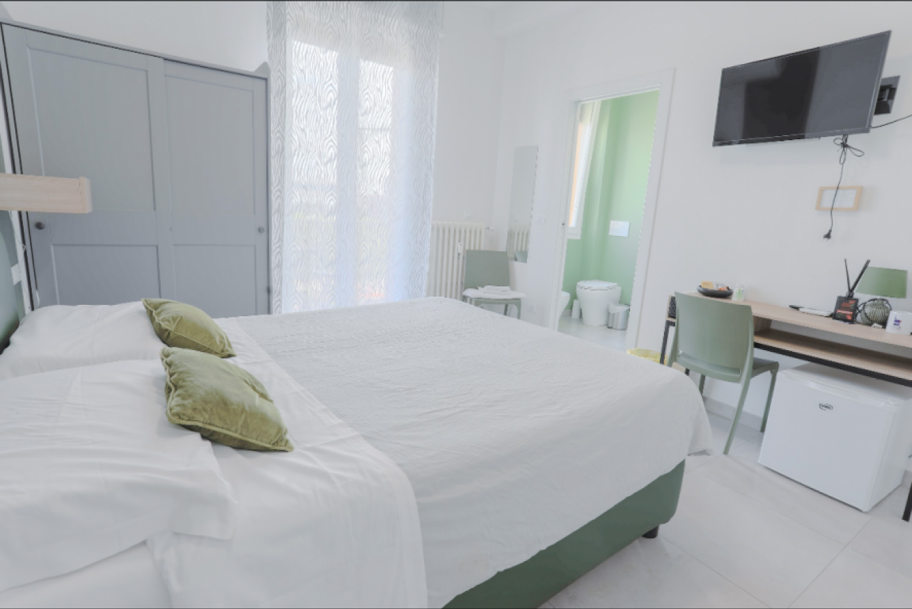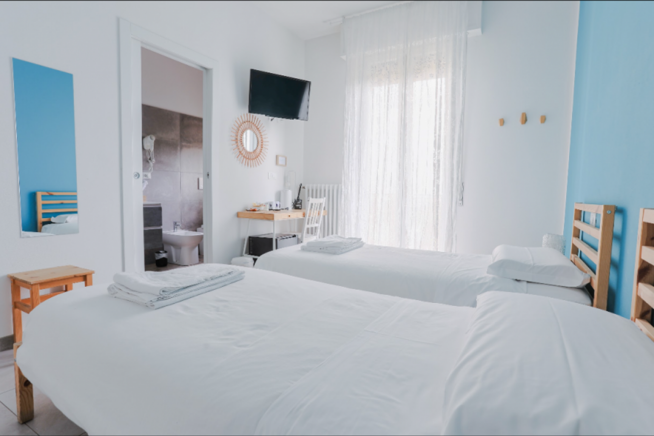 Camera doppia con due letti singoli/un letto matrimoniale con possibilità di aggiunta di letto singolo supplementare, servita di bagno privato, connessione wi-fi gratuita, smart TV, netflix, cassaforte, minibar, aria condizionata, riscaldamento, asciugamani, bagnoschiuma e saponi, phon e scrivania. Animali ammessi.