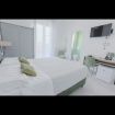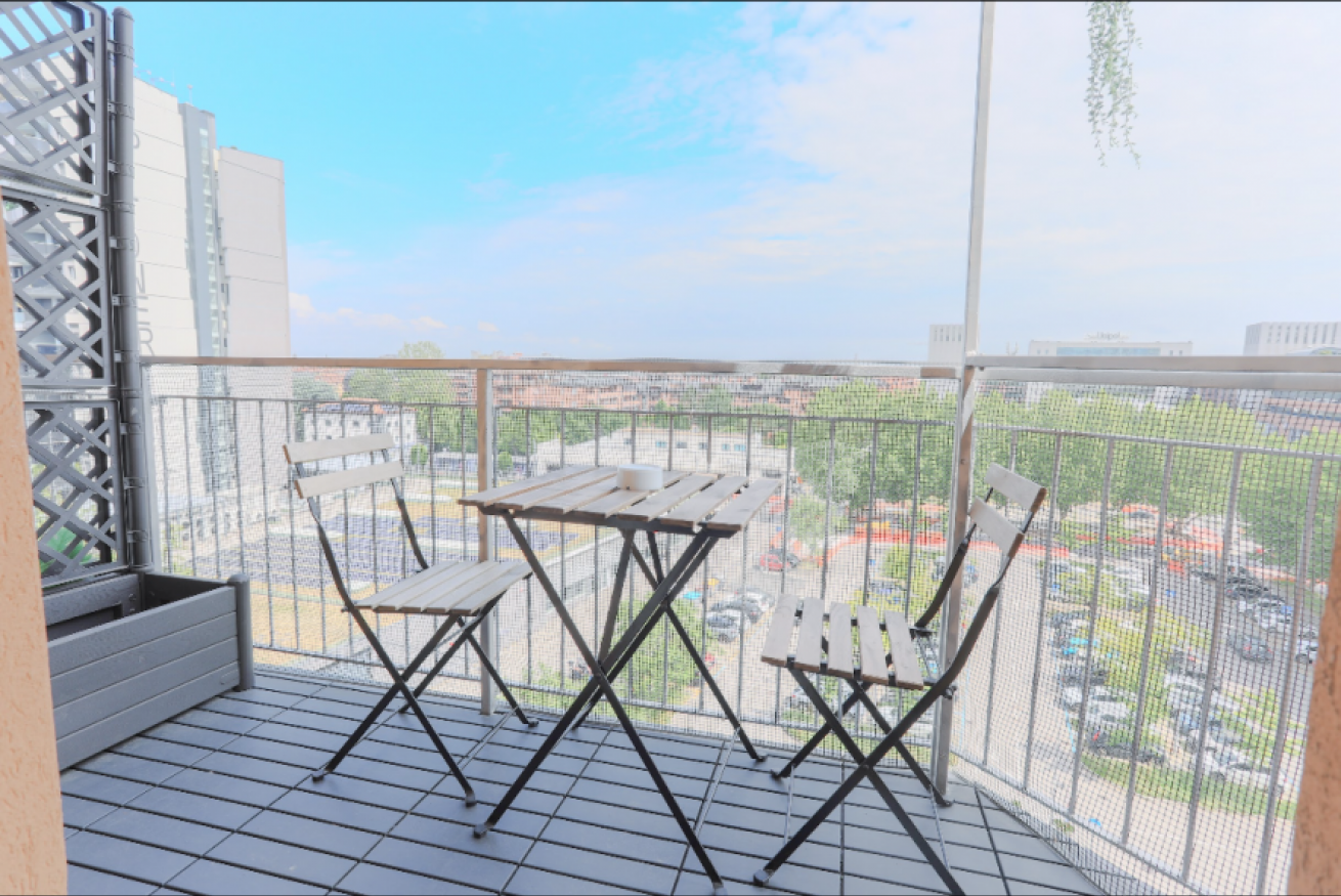 Questa camera crea un ambiente riposante e rilassante, grazie anche alla terrazza con vista mozzafiato dal sesto piano sul quartiere fieristico di Bologna...